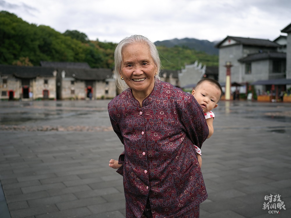 △16日下午,總書記離開(kāi)沙洲村前,82歲的曹戰(zhàn)蘭老人一直緊緊握住總書記的手。(總臺(tái)央視記者彭漢明拍攝)