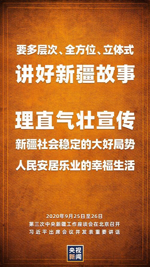 第三次中央新疆工作座談會(huì)9月25日至26日在北京召開。中共中央總書記、國家主席、中央軍委主席習(xí)近平出席會(huì)議并發(fā)表重要講話。