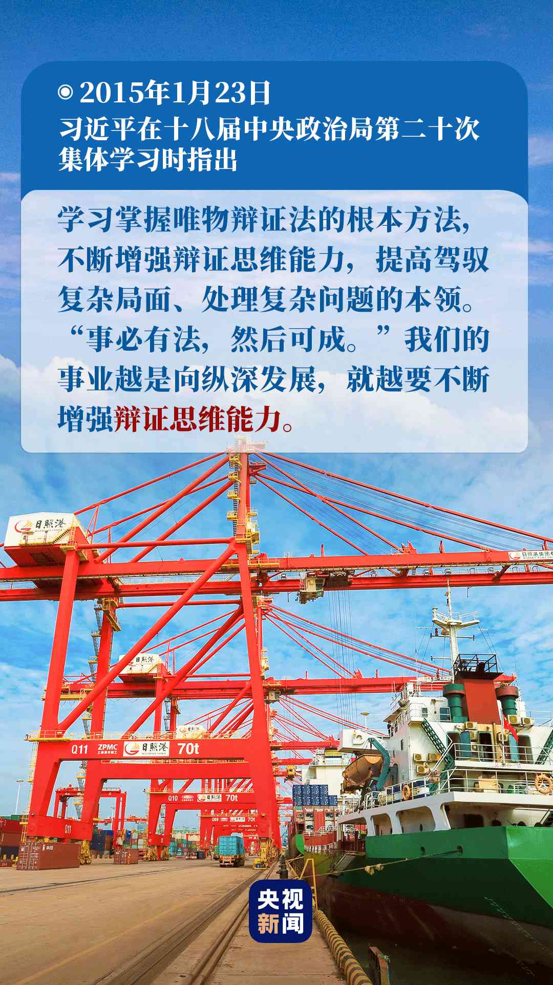 “要堅持發(fā)展地而不是靜止地、全面地而不是片面地、系統(tǒng)地而不是零散地、普遍聯(lián)系地而不是單一孤立地觀察事物,妥善處理各種重大關(guān)系?!?015年1月23日,習近平在十八屆中央政治局第二十次集體學習時的講話中,對如何在實際工作中運用唯物辯證法,作出了深刻闡述。