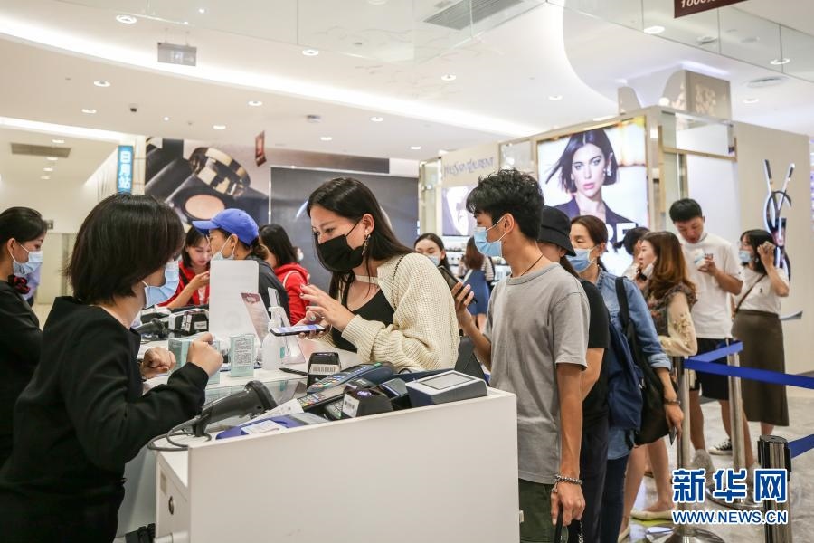 10月27日,消費(fèi)者在海南省海口市日月廣場免稅店選購商品。新華社記者 張麗蕓 攝