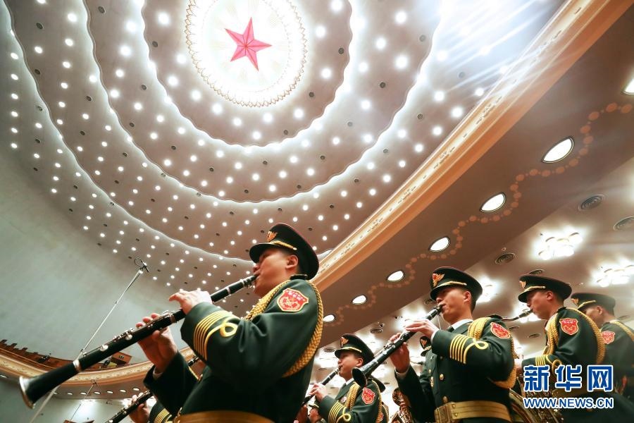 3月5日,第十三屆全國人民代表大會第四次會議在北京人民大會堂開幕。這是軍樂團在演奏。新華社記者 張玉薇 攝