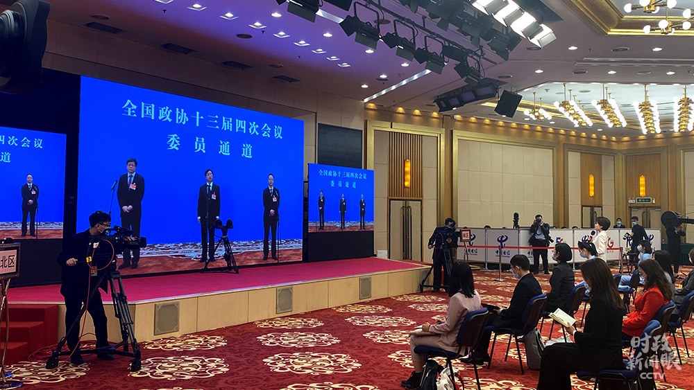 △當天14:05,全國政協(xié)十三屆四次會議首場“委員通道”采訪活動舉行,依舊采用“隔屏對話”的網(wǎng)絡視頻采訪方式。(總臺央視記者鄭連凱、郭茜拍攝)