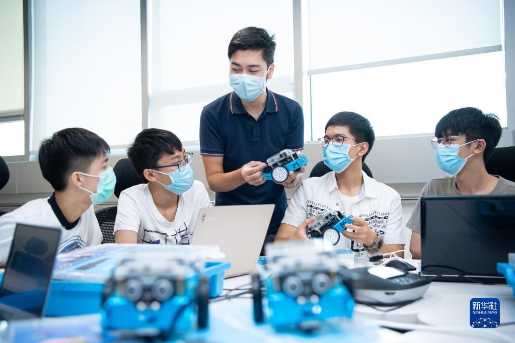 2020年7月14日,創(chuàng)業(yè)者吳以航在澳門青年創(chuàng)業(yè)孵化中心為學(xué)生上培訓(xùn)課?!?0后”吳以航是澳門青年創(chuàng)業(yè)孵化中心會員,2019年,他進(jìn)駐廣州市天河區(qū)港澳青年之家,成立藍(lán)點教育技術(shù)(廣州)有限公司。新華社記者張金加攝