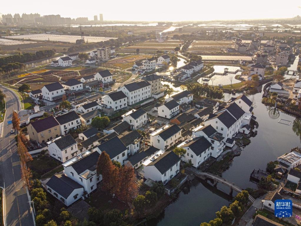 浙江省嘉興市秀洲區(qū)油車港鎮(zhèn)勝豐村景色( 2020年12月15日攝,無人機(jī)照片)。新華社記者 江漢 攝