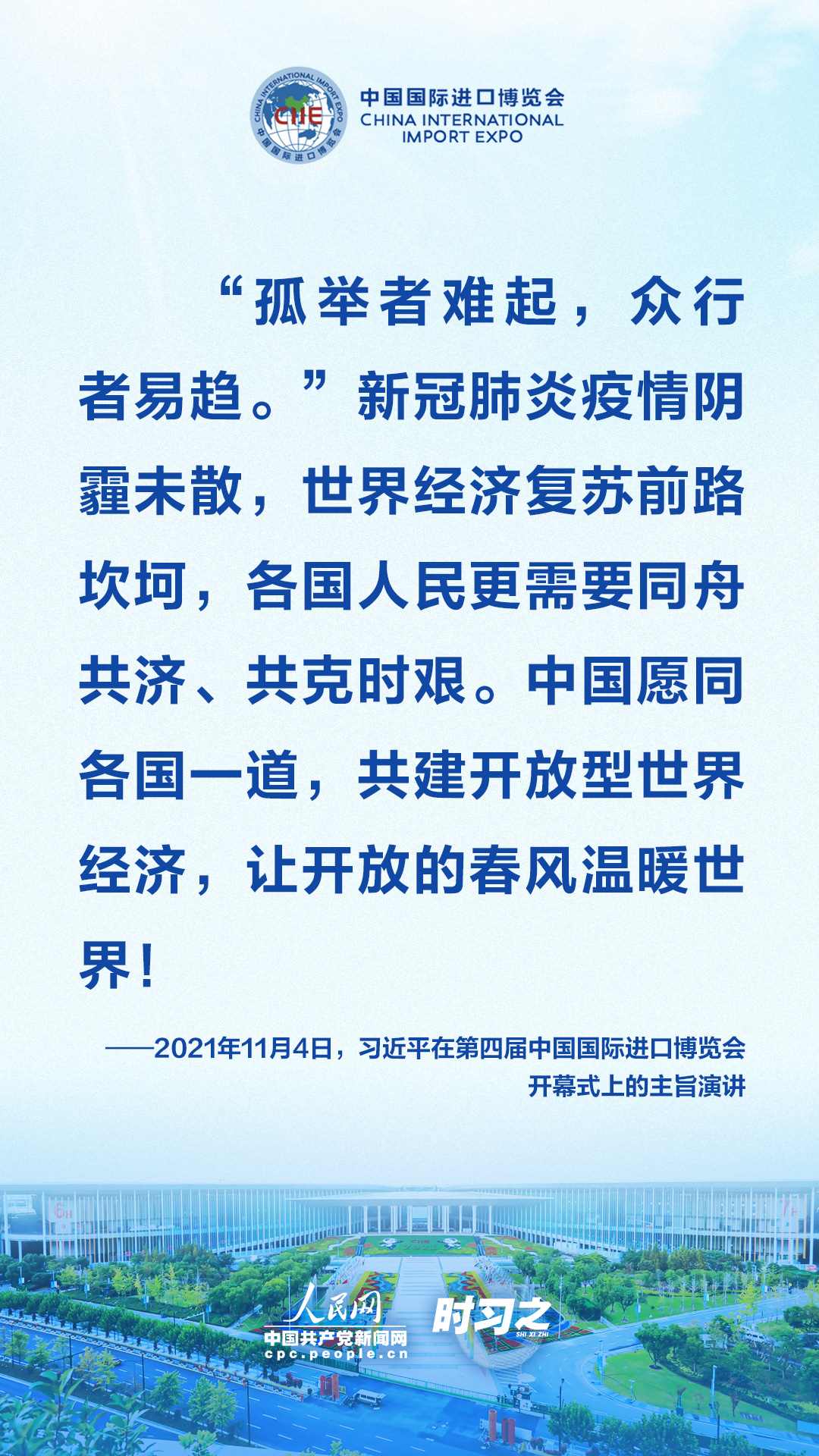 11月4日晚,國(guó)家主席習(xí)近平以視頻方式出席第四屆中國(guó)國(guó)際進(jìn)口博覽會(huì)開(kāi)幕式并發(fā)表題為《讓開(kāi)放的春風(fēng)溫暖世界》的主旨演講,傳遞出共建開(kāi)放型世界經(jīng)濟(jì)的堅(jiān)定決心。