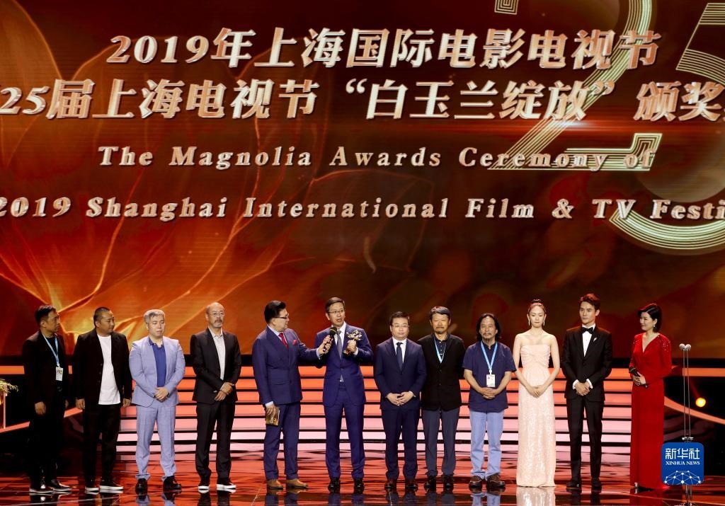 2019年6月14日,第25屆上海電視節(jié)落下帷幕,獲得“最佳中國電視劇”的《大江大河》主創(chuàng)上臺(tái)領(lǐng)獎(jiǎng)。新華社記者 劉穎/攝