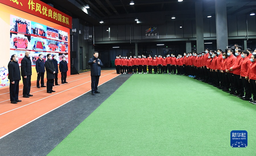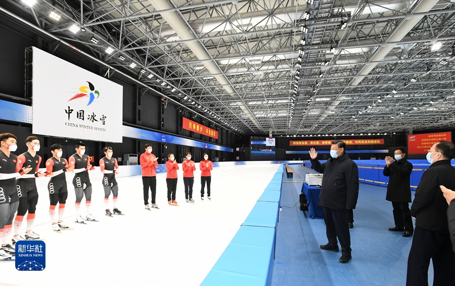 1月4日,中共中央總書記、國(guó)家主席、中央軍委主席習(xí)近平在北京考察2022年冬奧會(huì)、冬殘奧會(huì)籌辦備賽工作。這是4日下午,習(xí)近平在二七廠冰雪項(xiàng)目訓(xùn)練基地速滑館,向參訓(xùn)運(yùn)動(dòng)員、教練員表示慰問(wèn)。新華社記者 謝環(huán)馳 攝