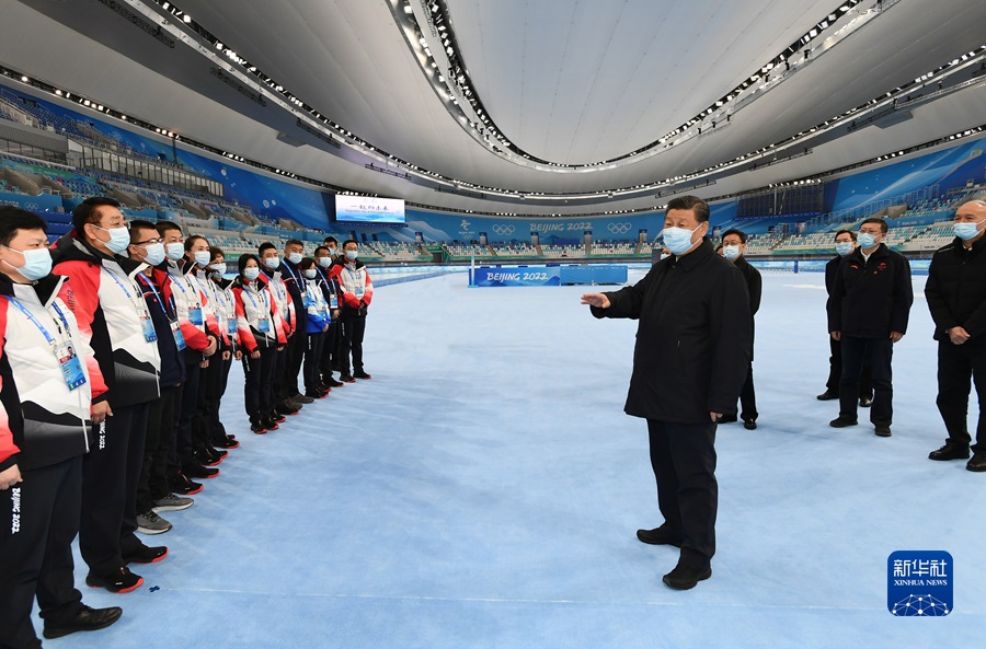 1月4日,中共中央總書記、國(guó)家主席、中央軍委主席習(xí)近平在北京考察2022年冬奧會(huì)、冬殘奧會(huì)籌辦備賽工作。這是4日上午,習(xí)近平在國(guó)家速滑館考察。新華社記者 謝環(huán)馳 攝