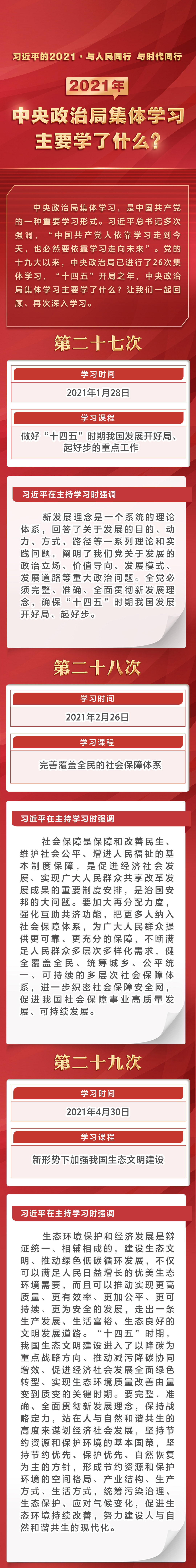 習(xí)近平的2021·與人民同行 與時(shí)代同行 2021年中央政治局集體學(xué)習(xí)主要學(xué)了什么?