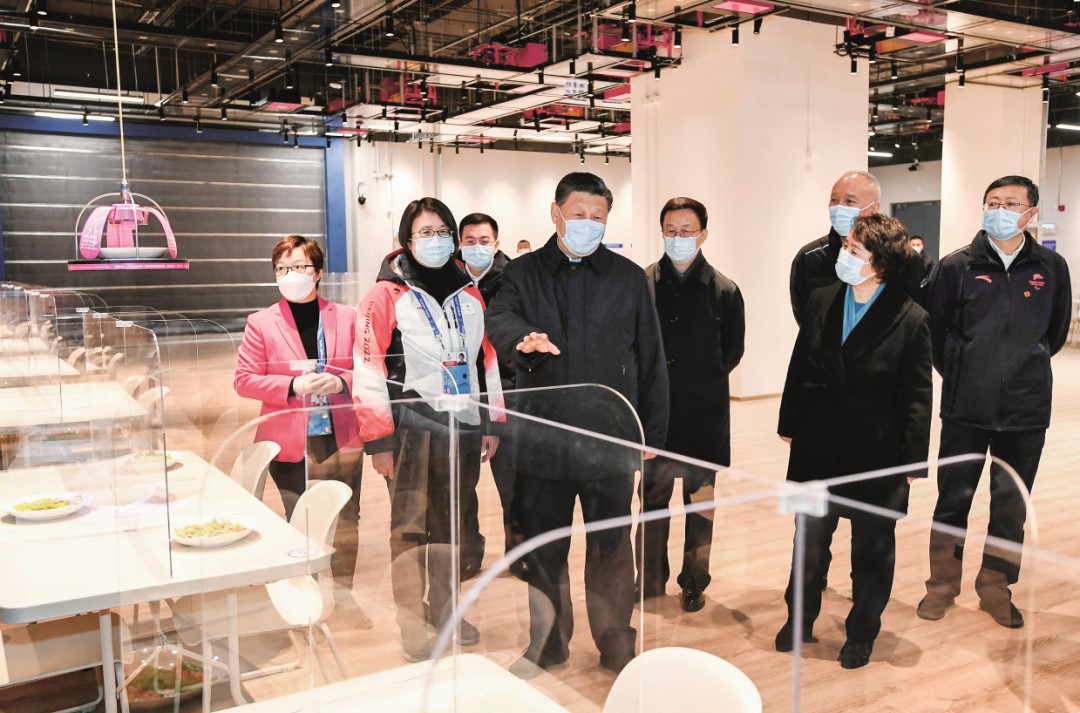 2022年1月4日,中共中央總書記、國家主席、中央軍委主席習(xí)近平在北京考察2022年冬奧會、冬殘奧會籌辦備賽工作。圖為1月4日上午,習(xí)近平在北京冬奧會、冬殘奧會主媒體中心智慧餐廳,察看智能餐飲設(shè)備運(yùn)行情況。圖/新華社記者