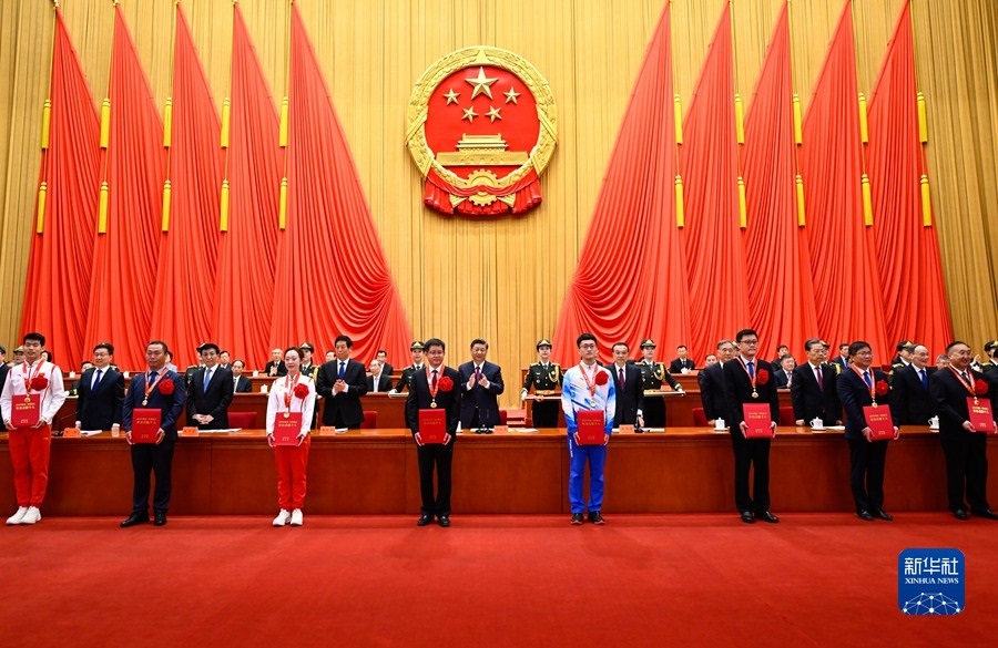 4月8日,北京冬奧會(huì)、冬殘奧會(huì)總結(jié)表彰大會(huì)在北京人民大會(huì)堂隆重舉行。習(xí)近平等為北京冬奧會(huì)、冬殘奧會(huì)突出貢獻(xiàn)個(gè)人和突出貢獻(xiàn)集體代表頒獎(jiǎng)。新華社記者 李學(xué)仁 攝