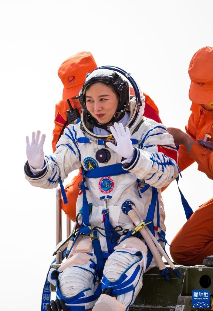 4月16日,神舟十三號載人飛船返回艙在東風(fēng)著陸場成功著陸。這是航天員王亞平安全順利出艙。新華社記者 連振 攝