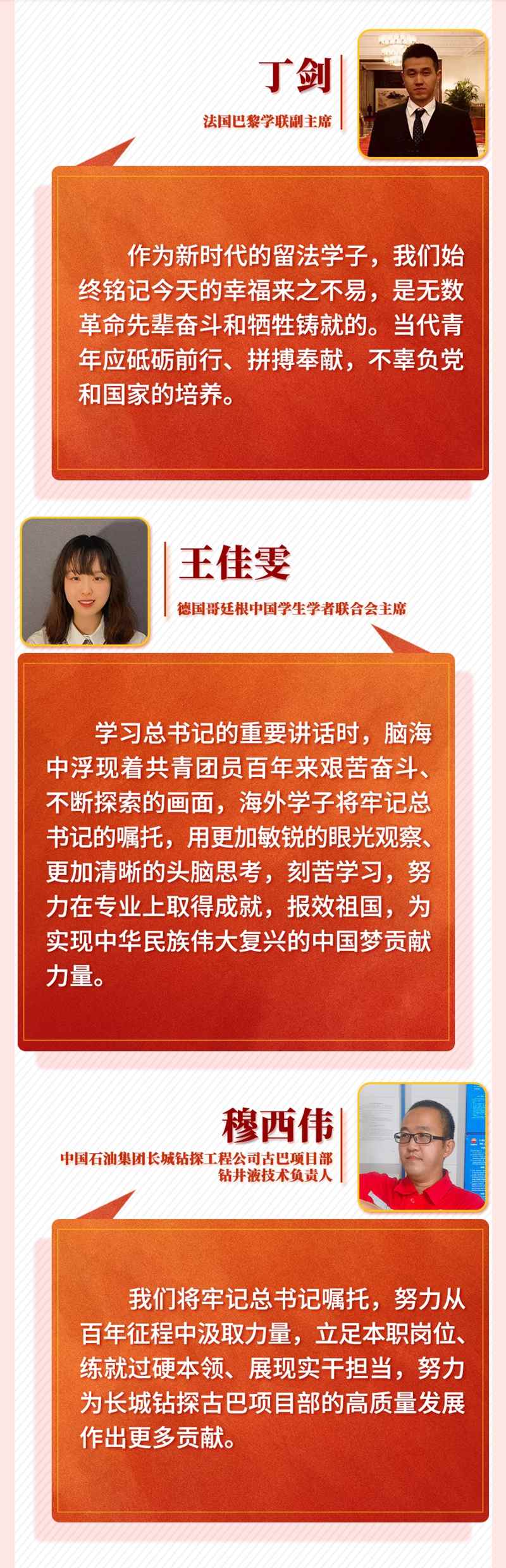 習(xí)近平總書記的重要講話令身在海外的中國青年備受鼓舞。他們一致表示,作為新時(shí)代的中國青年,一定牢記習(xí)近平總書記囑托,帶著夢(mèng)想和使命,讓青春在海外煥發(fā)異彩,在實(shí)現(xiàn)中華民族偉大復(fù)興中國夢(mèng)的新征程上奮勇前進(jìn),用青春的智慧和汗水打拼出一個(gè)更加美好的中國。