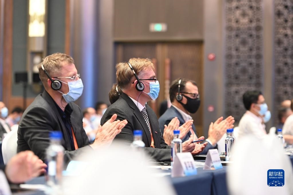2022年5月23日,嘉賓在福建廈門出席金磚國(guó)家工業(yè)互聯(lián)網(wǎng)與數(shù)字制造發(fā)展論壇開(kāi)幕式。新華社記者林善傳攝