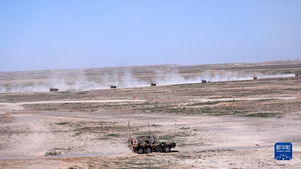 在“西部·聯(lián)合-2021”演習第一次實兵實裝實彈合練中,野戰(zhàn)救護力量為聯(lián)合任務(wù)部隊提供保障(2021年8月5日攝)。新華社記者劉芳攝