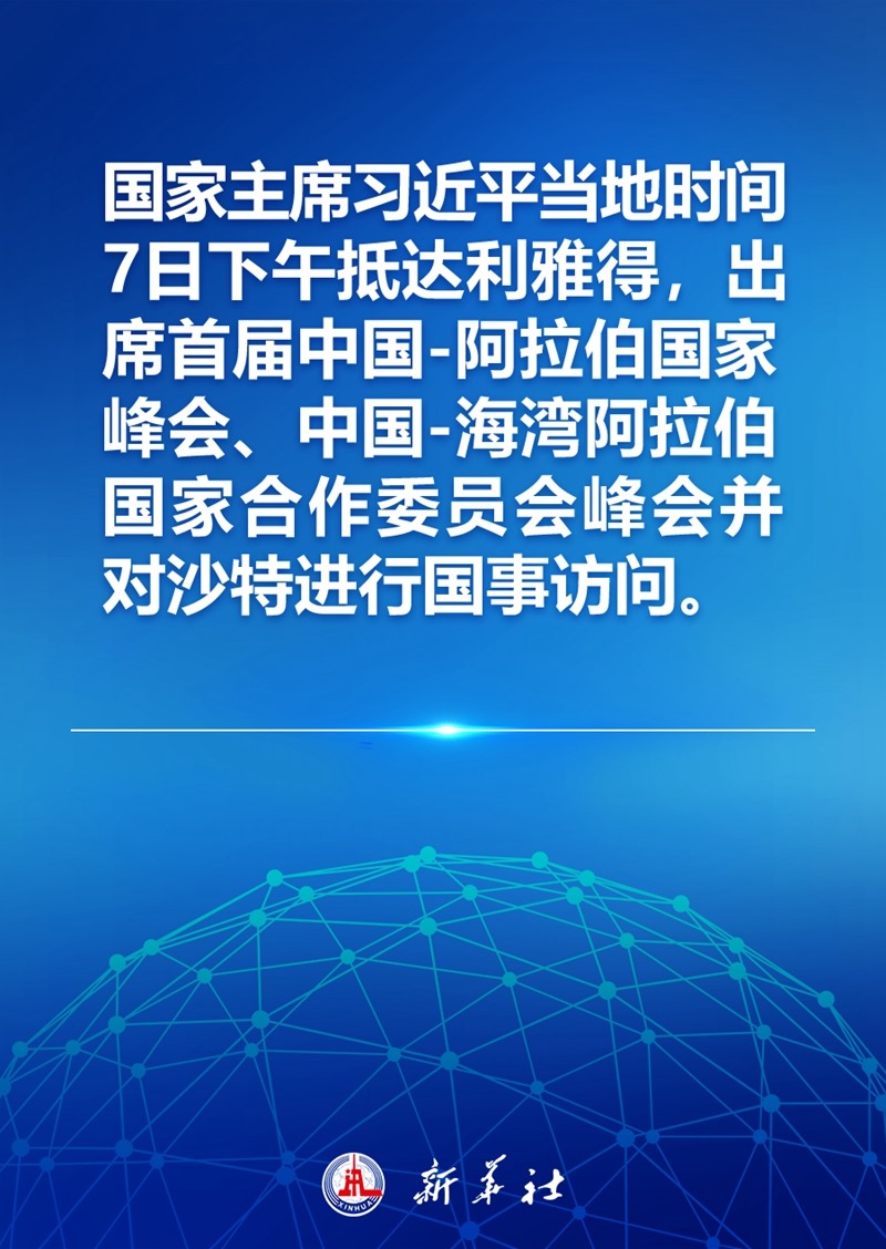 新華社快訊:國家主席習(xí)近平當(dāng)?shù)貢r(shí)間7日下午抵達(dá)利雅得,出席首屆中國-阿拉伯國家峰會(huì)、中國-海灣阿拉伯國家合作委員會(huì)峰會(huì)并對(duì)沙特進(jìn)行國事訪問。