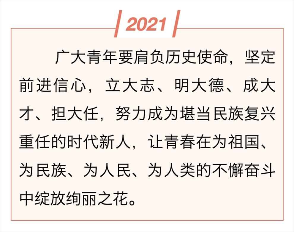 新時代新征程,中國青年將牢記總書記囑托,激揚奮斗青春,擔(dān)當(dāng)時代重任,讓青春年華在奮斗與奉獻中煥發(fā)出絢麗光彩。