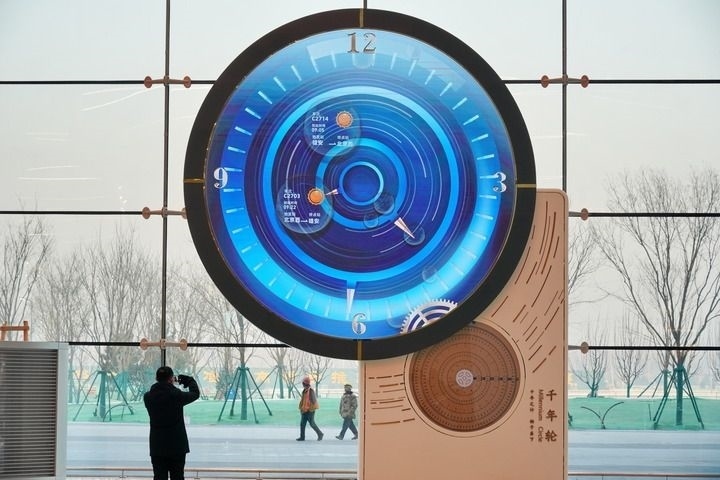 雄安站候車廳,一座“千年輪”吸引著往來(lái)旅客的目光。它的起始日期被設(shè)定為2017年4月1日——“雄安”第一次被公眾知曉的日子?!扒贻啞钡牡鬃?,鐫刻著8個(gè)金色大字——“千年之計(jì) 始于當(dāng)下”。齒輪不停地轉(zhuǎn)動(dòng),記錄下歷史前進(jìn)的軌跡。
