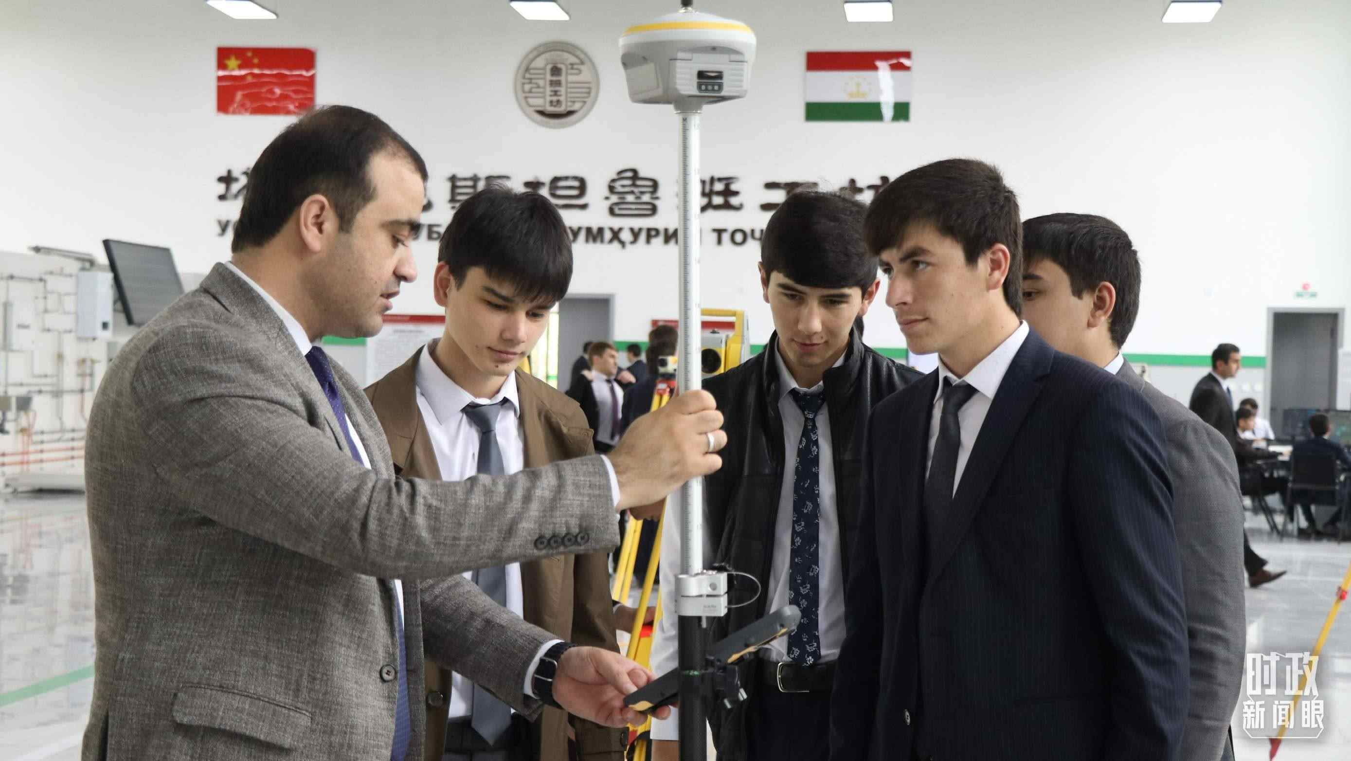 △在位于塔吉克斯坦杜尚別的魯班工坊內(nèi),塔方教師與學(xué)生們進(jìn)行儀器實訓(xùn)操作。(圖/視覺中國)