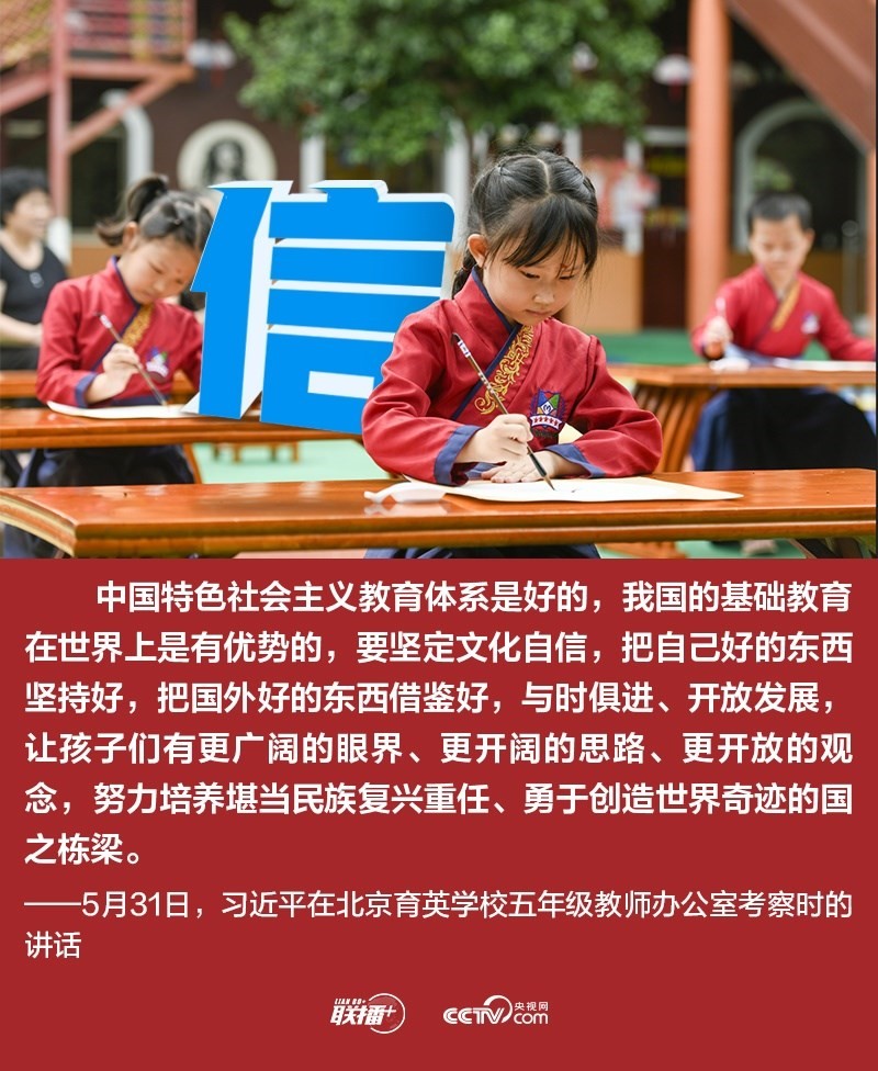 “新時(shí)代中國(guó)兒童應(yīng)該是有志向、有夢(mèng)想,愛(ài)學(xué)習(xí)、愛(ài)勞動(dòng),懂感恩、懂友善,敢創(chuàng)新、敢?jiàn)^斗,德智體美勞全面發(fā)展的好兒童?!笨疾熘校倳?shū)記對(duì)新時(shí)代中國(guó)兒童提出殷殷期望,勉勵(lì)孩子們立志為強(qiáng)國(guó)建設(shè)、民族復(fù)興而讀書(shū),不負(fù)家長(zhǎng)期望,不負(fù)黨和人民期待。