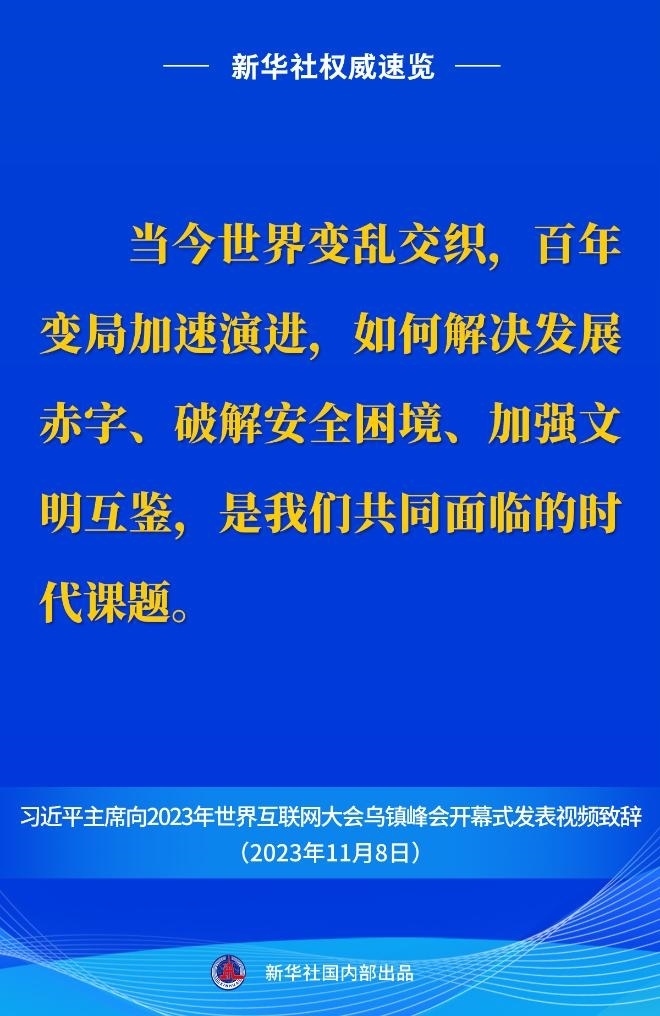 習(xí)近平主席向2023年世界互聯(lián)網(wǎng)大會(huì)烏鎮(zhèn)峰會(huì)開幕式視頻致辭金句 11月8日上午,國家主席習(xí)近平向2023年世界互聯(lián)網(wǎng)大會(huì)烏......