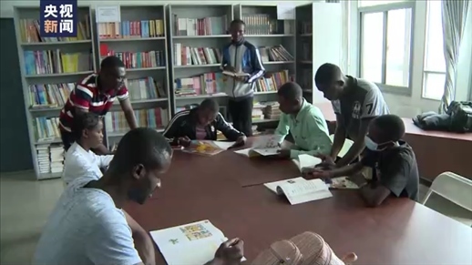 △漢語(yǔ)愛好者在恩古瓦比大學(xué)圖書館中國(guó)館里學(xué)習(xí)。