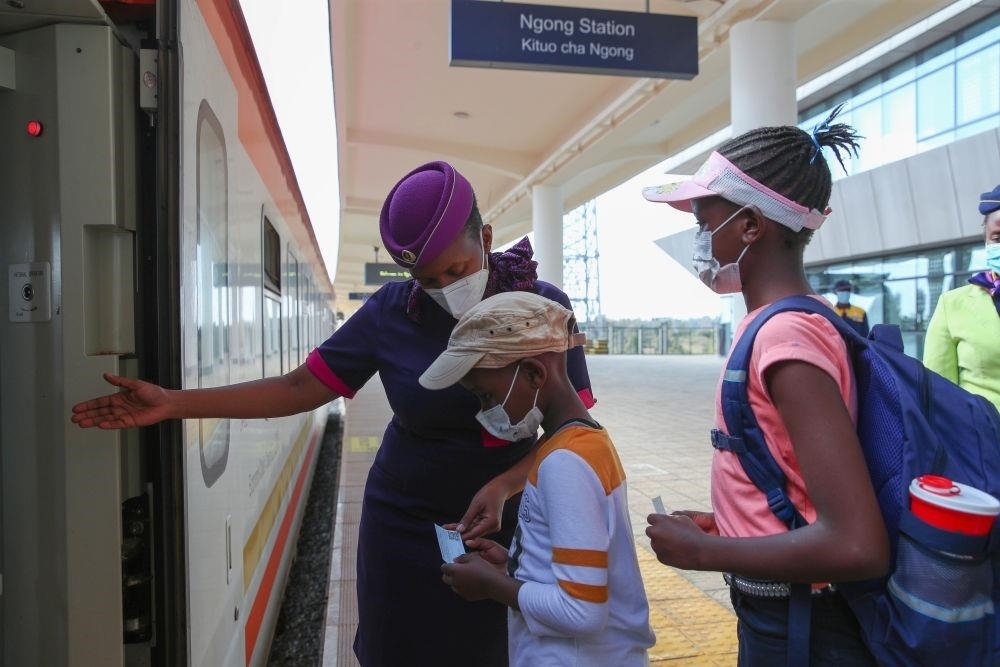 △2022年3月25日,乘客在肯尼亞蒙內(nèi)鐵路恩貢站排隊(duì)上車。
