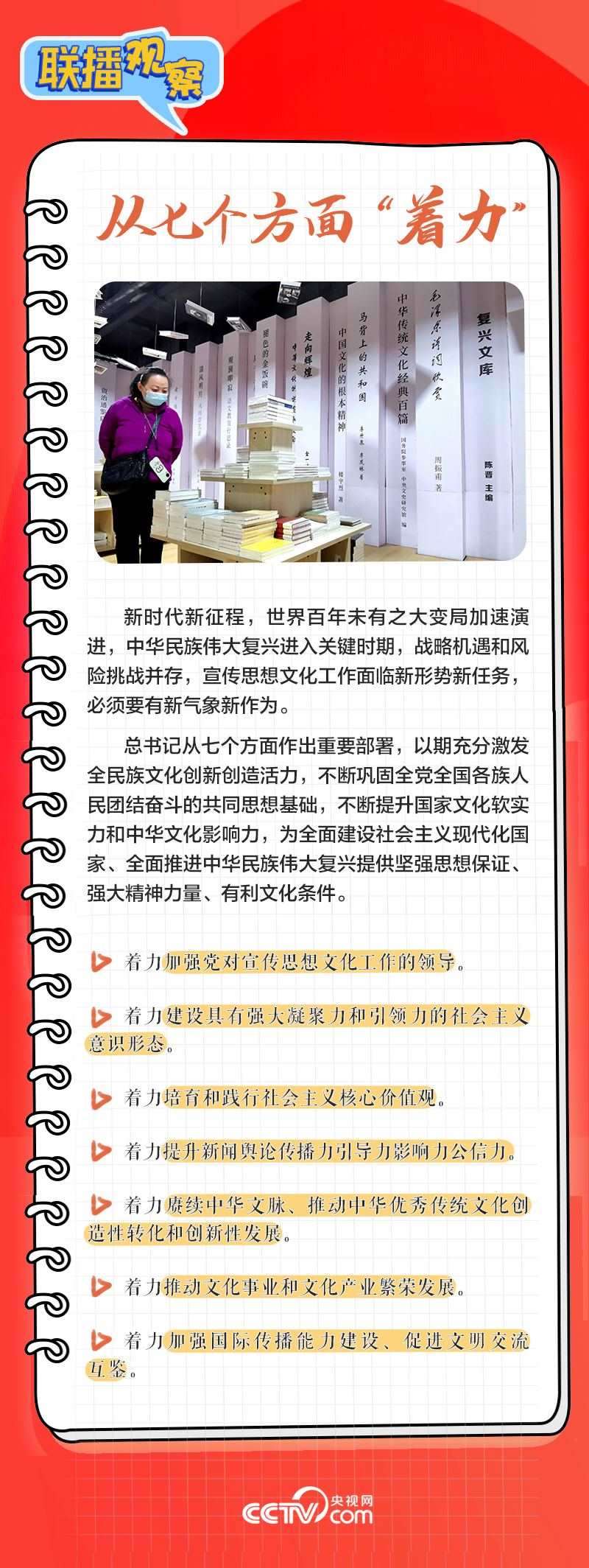 近日,習(xí)近平總書記對宣傳思想文化工作作出重要指示,提出“新的文化使命”“首要政治任務(wù)”等論斷,并要求從七個方面著力,為全面建設(shè)社會主義現(xiàn)代化國家、全面推進中華民族偉大復(fù)興提供堅強思想保證、強大精神力量、有利文化條件。