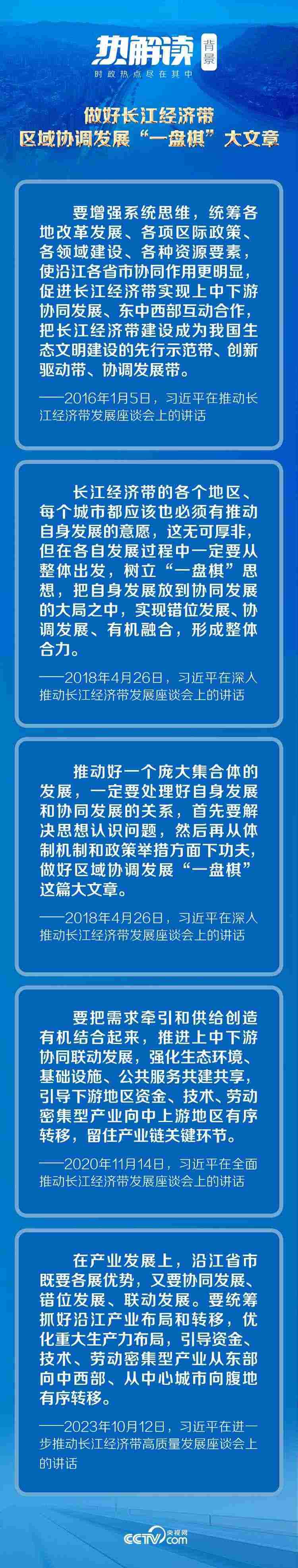 沿江省市如何把自身發(fā)展投入?yún)f(xié)同發(fā)展大局,實(shí)現(xiàn)錯(cuò)位發(fā)展、協(xié)調(diào)發(fā)展、有機(jī)融合,形成整體合力?總書(shū)記在此次座談會(huì)上對(duì)沿江省市提出16字鮮明要求——“省際共商、生態(tài)共治、全域共建、發(fā)展共享”。