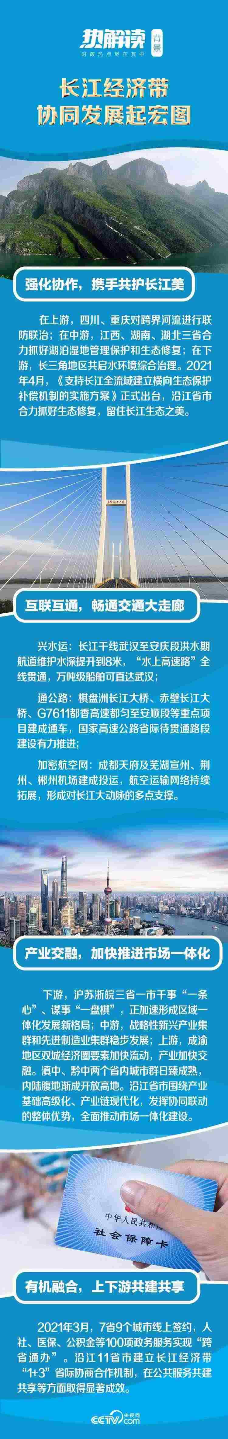 從環(huán)境保護(hù)到基礎(chǔ)設(shè)施互聯(lián)互通,從市場(chǎng)一體化建設(shè)到公共服務(wù)共建共享,長(zhǎng)江上中下游協(xié)同聯(lián)動(dòng)發(fā)展,打造出區(qū)域協(xié)調(diào)發(fā)展的新樣板。