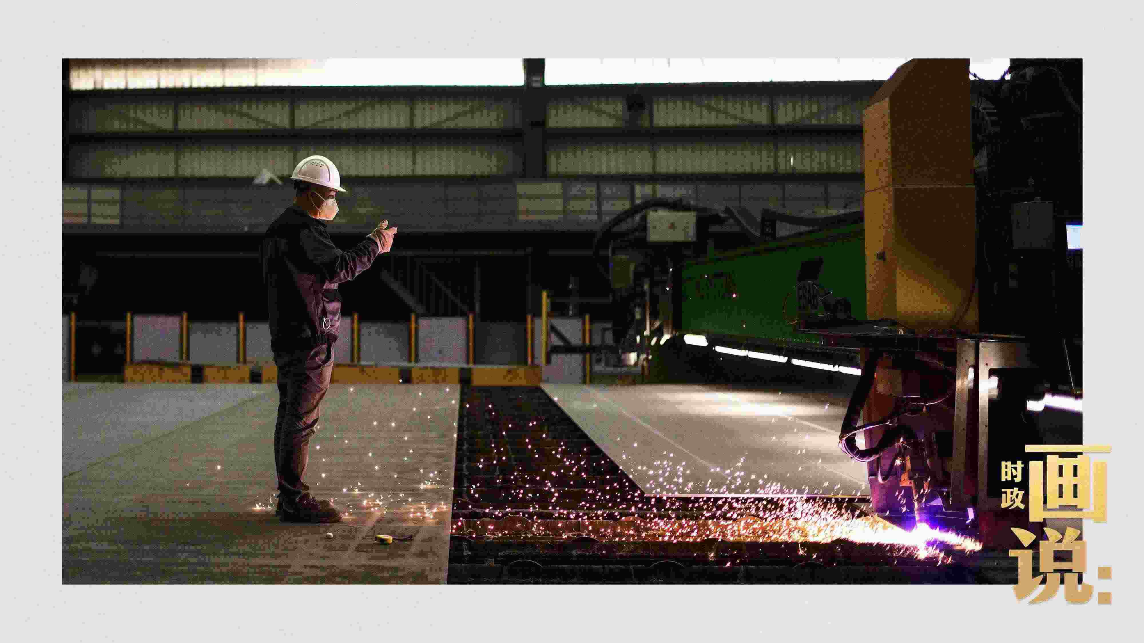 △薄板智能生產(chǎn)中心內,激光切割機正在將特種鋼板加工成標準零件。浦東新區(qū),上海。