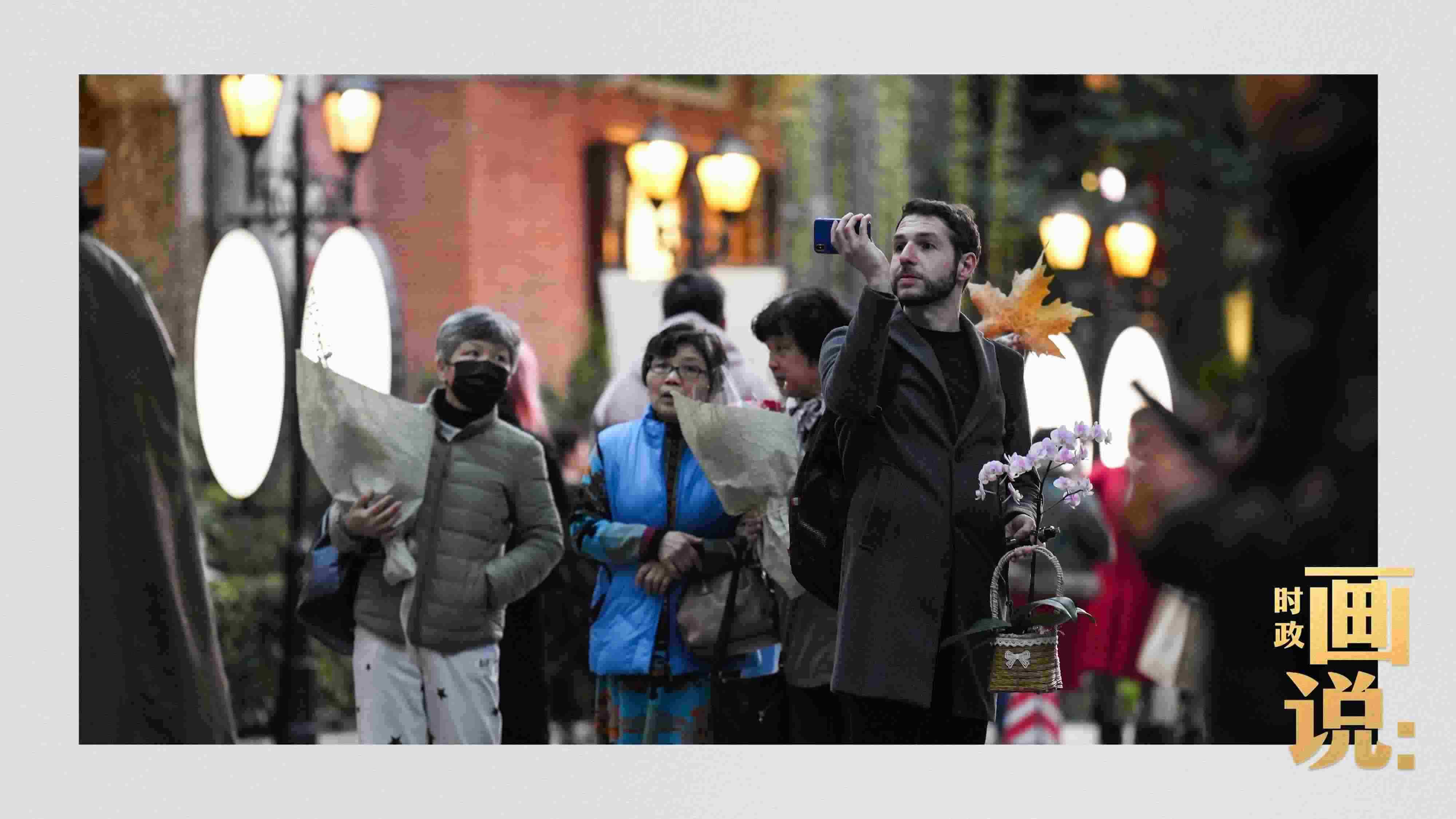 △武康大樓前留影的外籍游客興奮不已?;春V新?,上海。