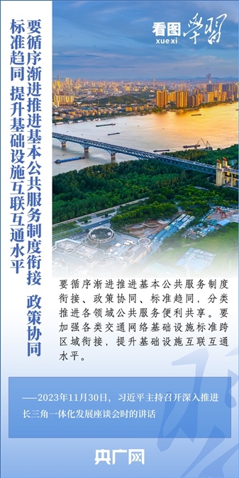 11月30日,習(xí)近平總書(shū)記在上海主持召開(kāi)深入推進(jìn)長(zhǎng)三角一體化發(fā)展座談會(huì)并發(fā)表重要講話??倳?shū)記強(qiáng)調(diào),要完整、準(zhǔn)確、全面貫徹新發(fā)展理念,緊扣一體化和高質(zhì)量這兩個(gè)關(guān)鍵詞,樹(shù)立全球視野和戰(zhàn)略思維,堅(jiān)定不移深化改革、擴(kuò)大高水平開(kāi)放,統(tǒng)籌科技創(chuàng)新和產(chǎn)業(yè)創(chuàng)新,統(tǒng)籌龍頭帶動(dòng)和各揚(yáng)所長(zhǎng),統(tǒng)籌硬件聯(lián)通和機(jī)制協(xié)同,統(tǒng)籌生態(tài)環(huán)保和經(jīng)濟(jì)發(fā)展,在推進(jìn)共同富裕上先行示范,在建設(shè)中華民族現(xiàn)代文明上積極探索,推動(dòng)長(zhǎng)三角一體化發(fā)展取得新的重大突破,在中國(guó)式現(xiàn)代化中走在前列,更好發(fā)揮先行探路、引領(lǐng)示范、輻射帶動(dòng)作用。一起來(lái)學(xué)習(xí)!