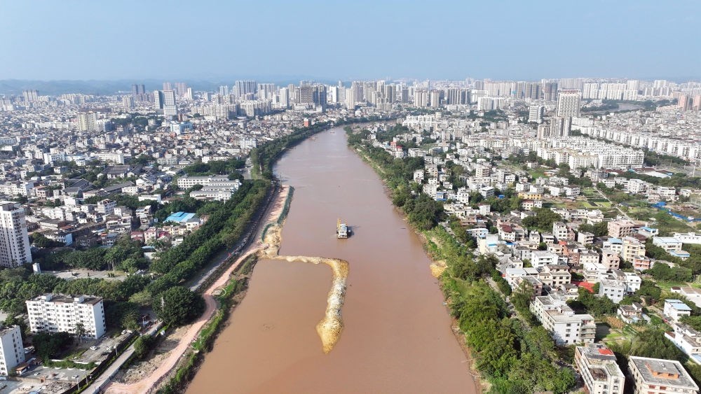 這是11月25日拍攝的平陸運(yùn)河途徑欽州市區(qū)的航道(無(wú)人機(jī)照片)。新華社記者 張愛林 攝