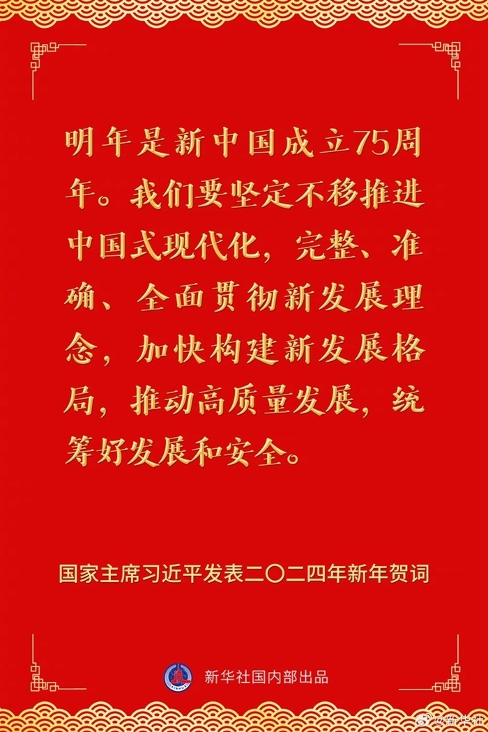 國家主席習(xí)近平發(fā)表二〇二四年新年賀詞,一起來看金句。