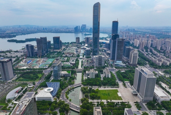 蘇州工業(yè)園區(qū)(無(wú)人機(jī)照片,2023年7月3日攝)。新華社記者李博攝