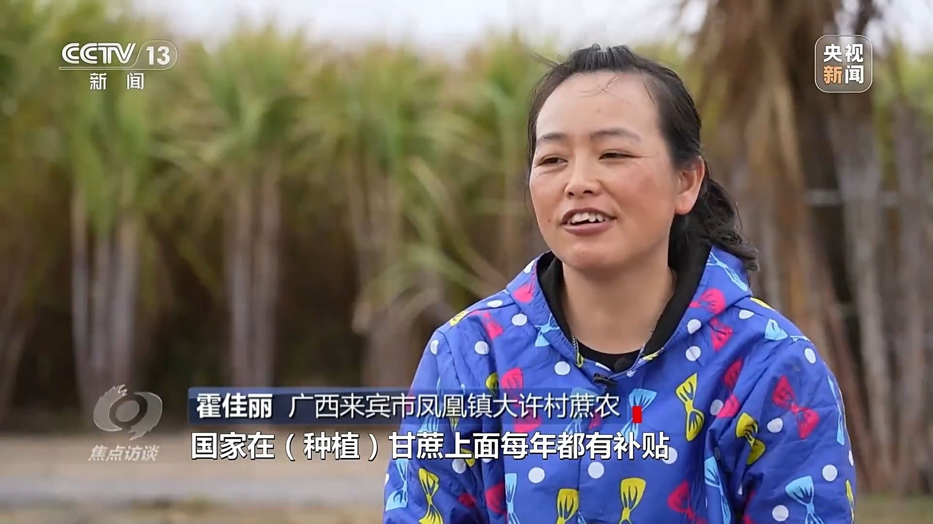霍佳麗:“國(guó)家在(種植)甘蔗上面每年都有補(bǔ)貼,有甘蔗種苗的補(bǔ)貼,整地的機(jī)耕費(fèi)也有補(bǔ)貼?!?/p>
