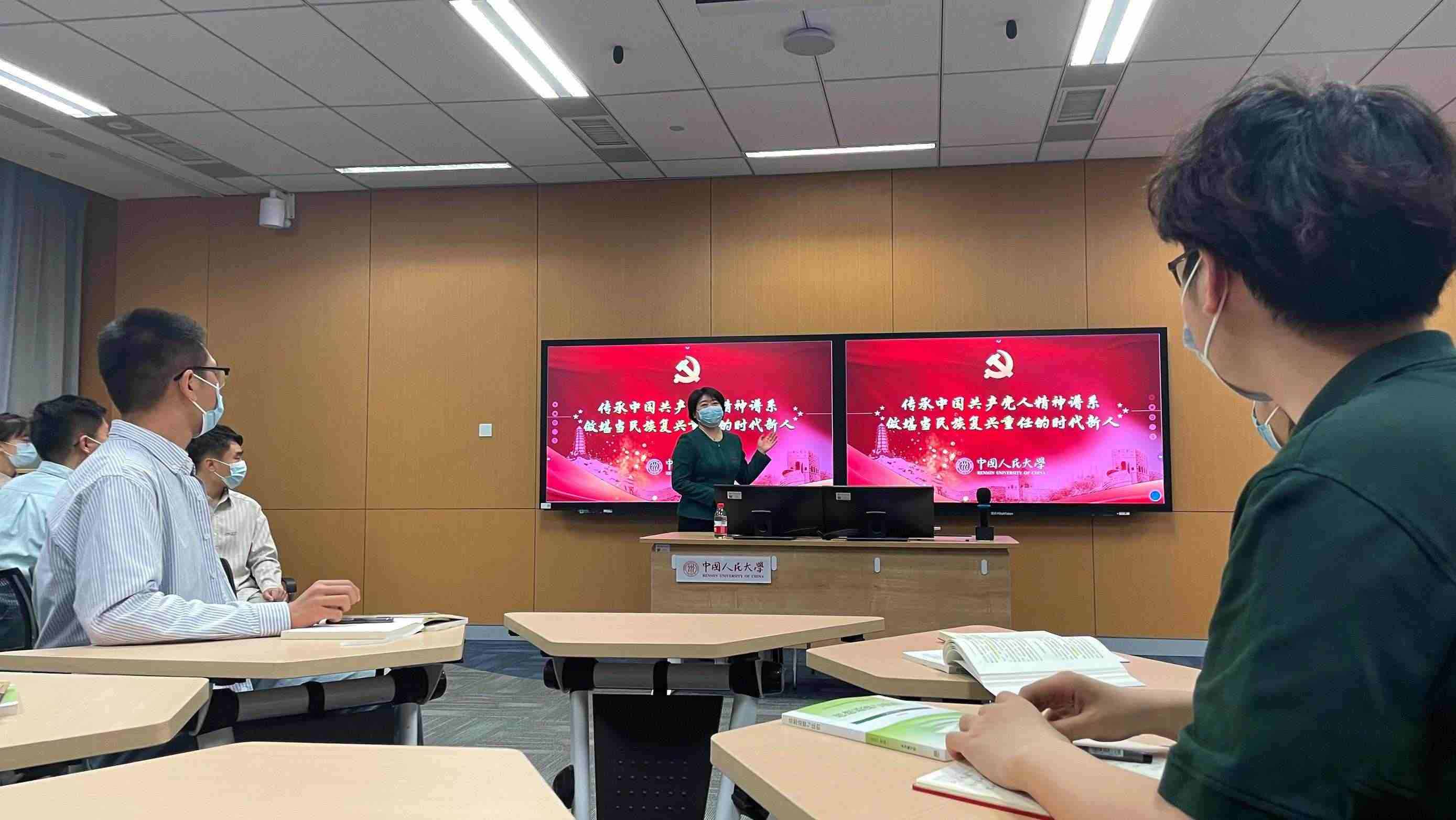 講臺(tái)前,授課教師、中國(guó)人民大學(xué)馬克思主義學(xué)院黨委書(shū)記王易正在播放視頻《陜北公學(xué)》,帶領(lǐng)同學(xué)們回顧“中國(guó)不會(huì)亡,因?yàn)橛嘘児钡募t色歷史,重溫人大人心中的延安精神。