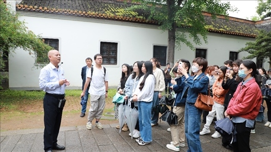 △2023年5月23日,湖南大學(xué)師生正在上以“銘記歷史、緬懷先烈、弘揚(yáng)愛(ài)國(guó)奮斗精神”為主題的“移動(dòng)”思政課。