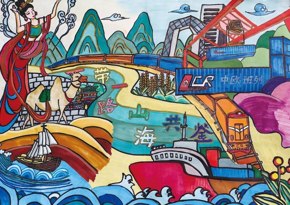 △第三屆“天宮畫(huà)展”中展出的作品《一帶一路 山海共鑒》