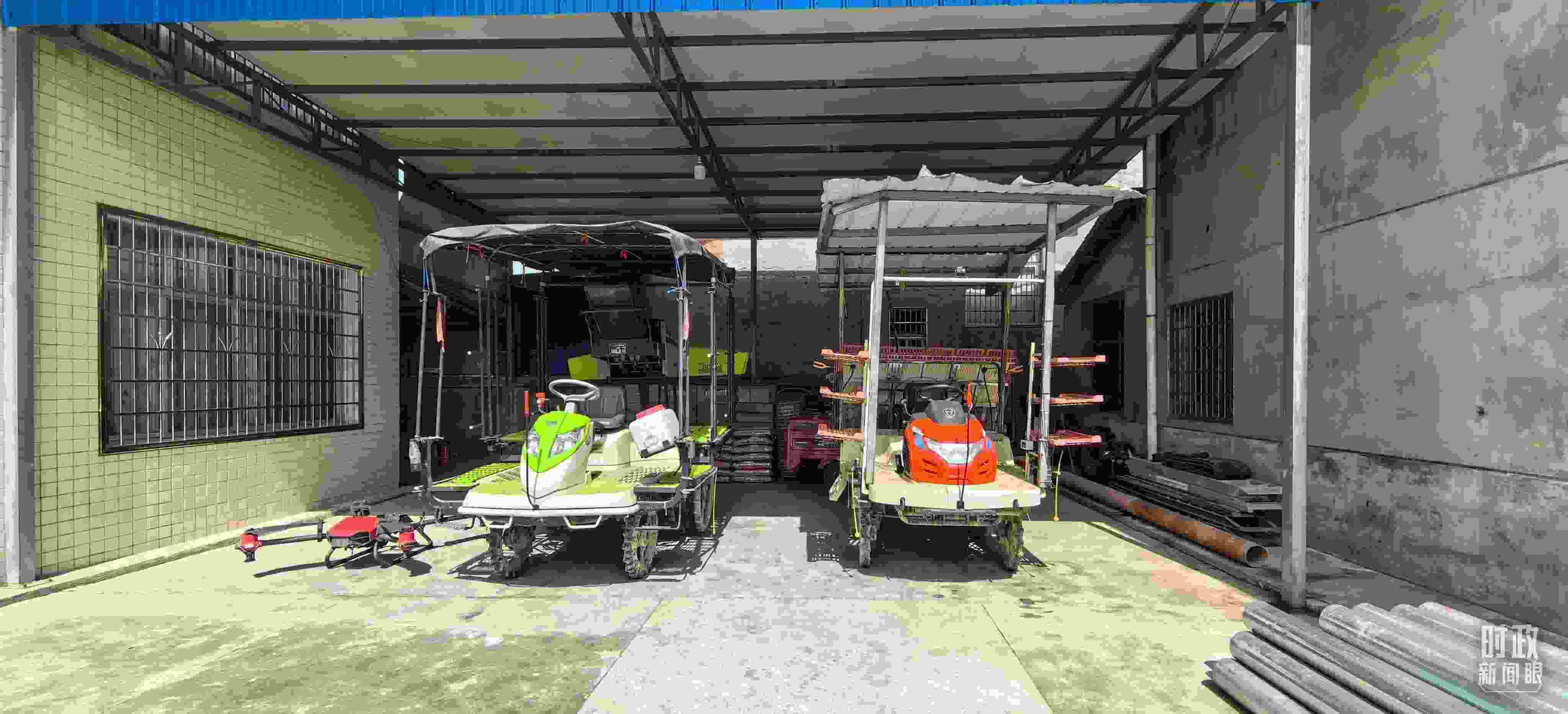 △港中坪村種糧大戶家里的農(nóng)機(jī)具。(總臺央視記者馬超拍攝)