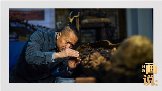 △安鄉(xiāng)潘氏藝術(shù)木雕傳承人潘能輝在繪制手稿。