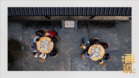 △農(nóng)家院,八仙桌,歡笑聲里擂茶飄香,千百年的傳統(tǒng)在普通人的日子里接續(xù)傳承。