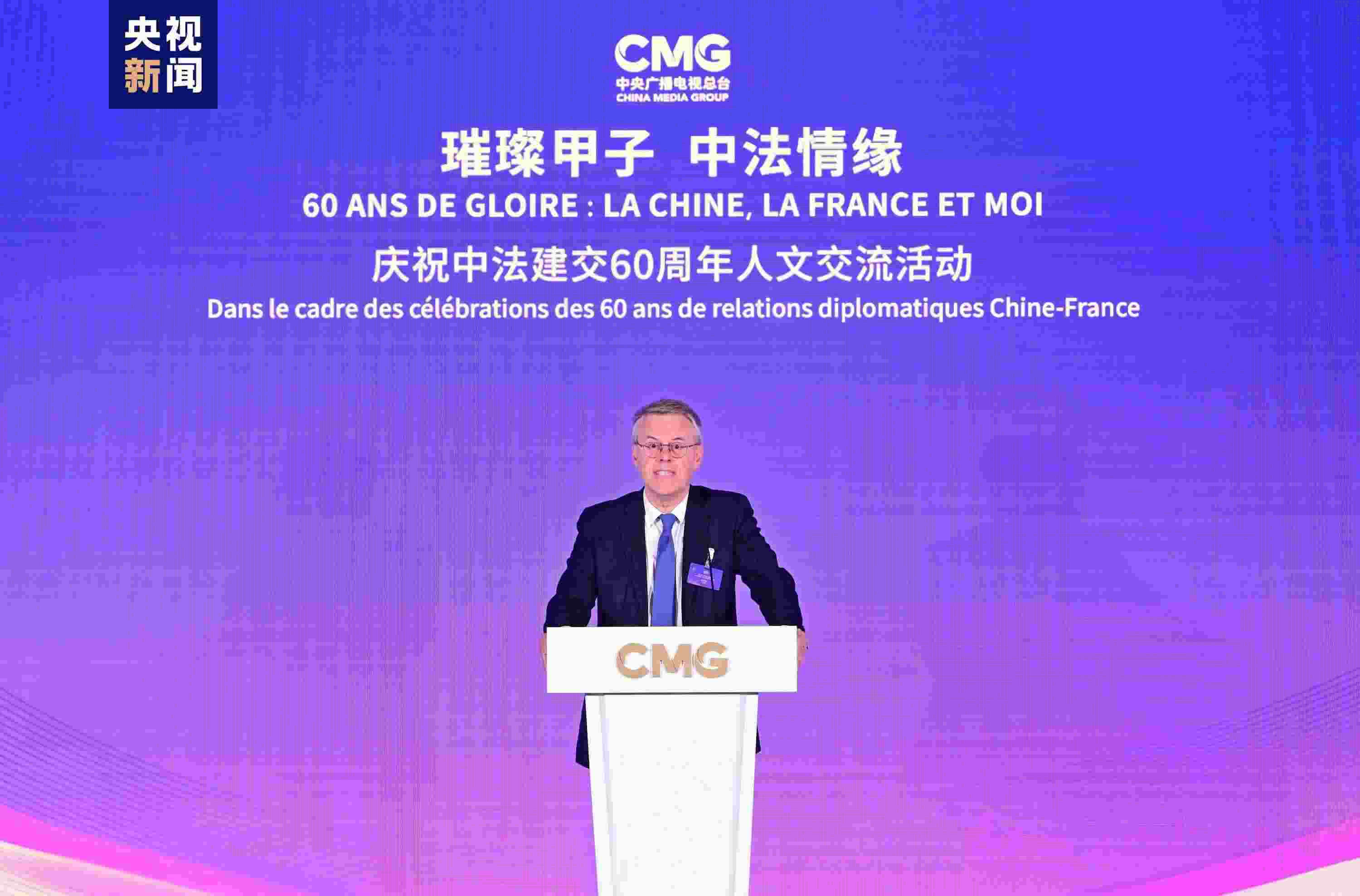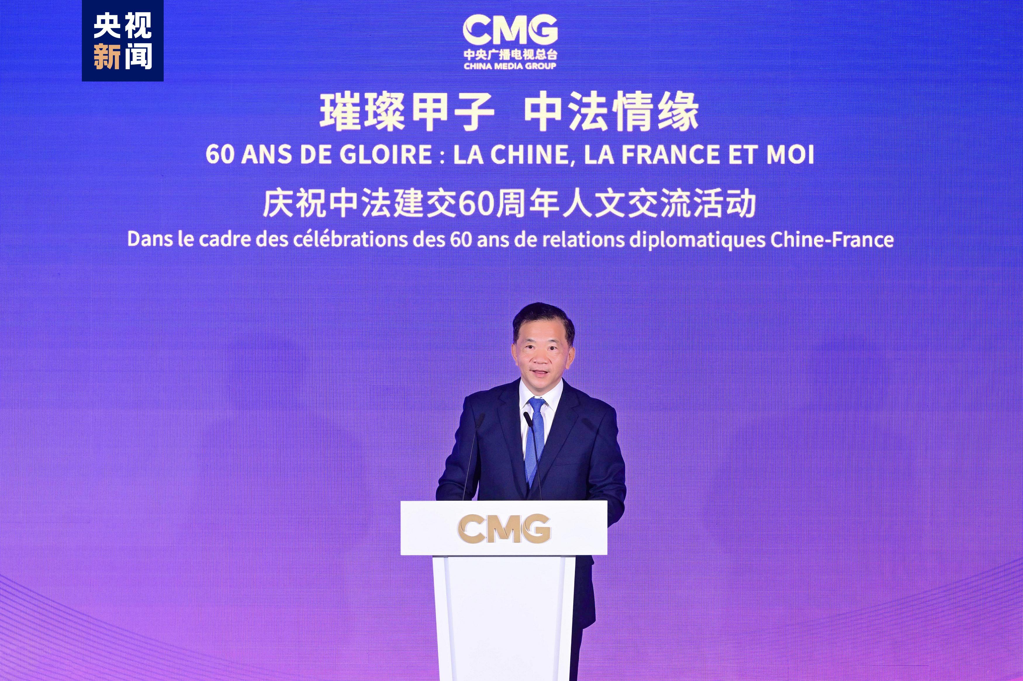 慎海雄表示,習(xí)近平主席指出,敢為人先、與時(shí)俱進(jìn)是中法關(guān)系始終走在中國(guó)同西方國(guó)家關(guān)系前列的重要法寶。法國(guó)是具有獨(dú)立見解、獨(dú)特個(gè)性的西方大國(guó),不僅因其經(jīng)濟(jì)實(shí)力,還因國(guó)家品質(zhì)和人民氣節(jié),贏得了中國(guó)人民的尊重。建交60年來,中法兩國(guó)的友誼之船在兩國(guó)元首把舵定向下行穩(wěn)致遠(yuǎn)。人文交流貴在思想、文化的交匯、碰撞和吸引。中央廣播電視總臺(tái)精品節(jié)目《平“語”近人——習(xí)近平喜歡的典故》(國(guó)際版)在法國(guó)播出,為大家讀懂習(xí)主席的思想、中國(guó)文化、中國(guó)智慧打開一扇思想之窗,邀大家共賞璀璨輝煌的中華文明和新時(shí)代中國(guó)的獨(dú)特魅力。站在中法建交一甲子的歷史節(jié)點(diǎn),總臺(tái)愿與法國(guó)朋友們并肩同行,為打造更加牢固、更富活力的中法全面戰(zhàn)略伙伴關(guān)系、推動(dòng)構(gòu)建人類命運(yùn)共同體貢獻(xiàn)智慧和力量。