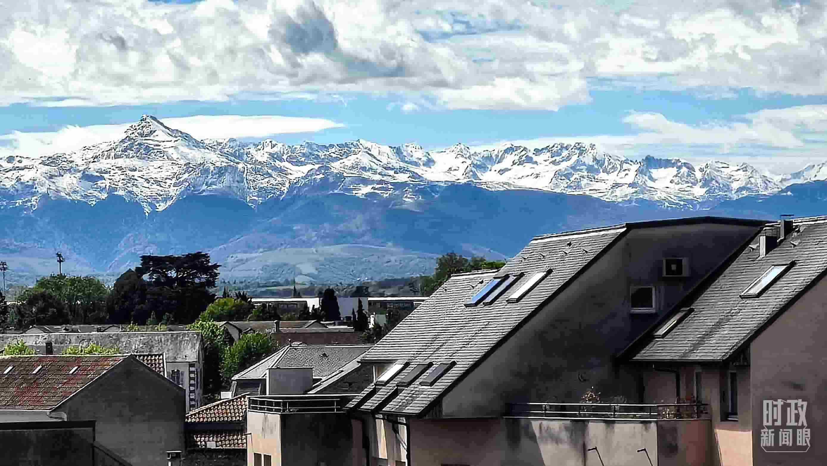 △從塔布市區(qū)遠眺比利牛斯山。(總臺央視記者楊波拍攝)