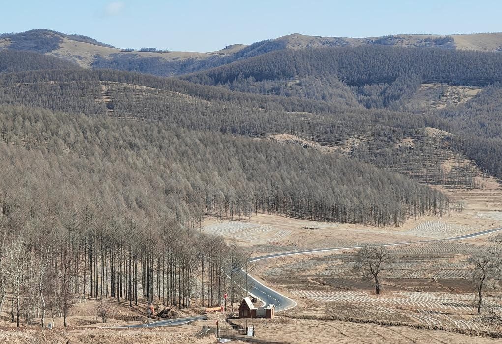 內(nèi)蒙古喀喇沁旗小美林鎮(zhèn)到河北省圍場縣蘭旗卡倫鄉(xiāng)的公路(2024年3月29日攝)。新華社記者 魏婧宇 攝