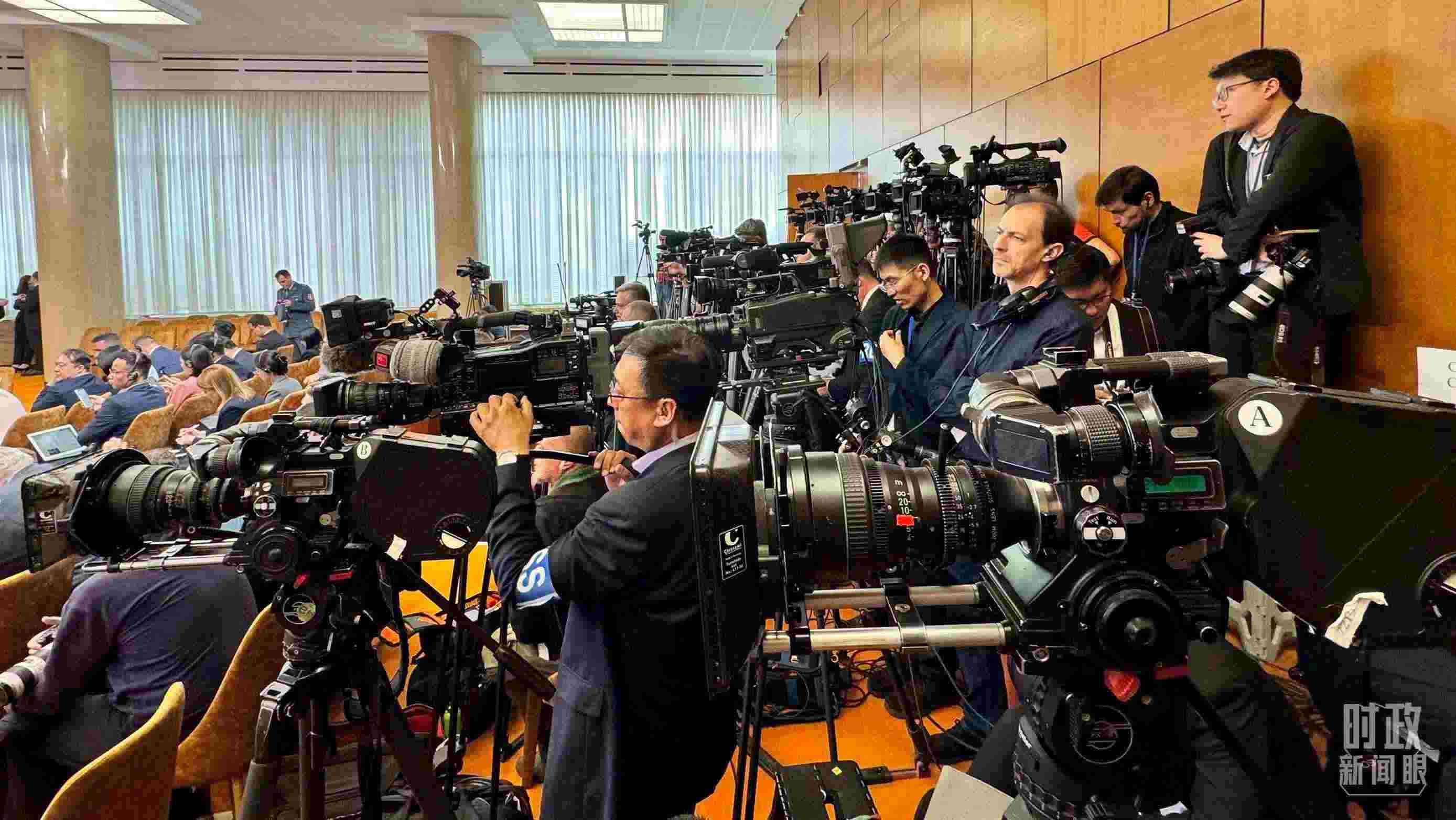 △這是中塞兩國元首共見記者開始前的現(xiàn)場,記者云集。(總臺央視記者李增仁拍攝)