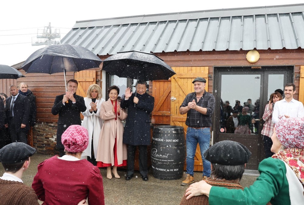 鐵制的牛鈴、風(fēng)干的火腿、斑駁的獸皮毯、歡快的牧羊人之舞……南法山區(qū)的古樸民風(fēng)撲面而來(lái)。屋外銀裝素裹,屋內(nèi)暖意融融。兩國(guó)元首憑窗而坐,遠(yuǎn)眺山景氣象萬(wàn)千,縱論世事風(fēng)云變幻,暢敘文明和美之道。從尼斯夜談到豫園茶敘,從松園會(huì)晤到雪山對(duì)話,中法元首外交再續(xù)佳話。