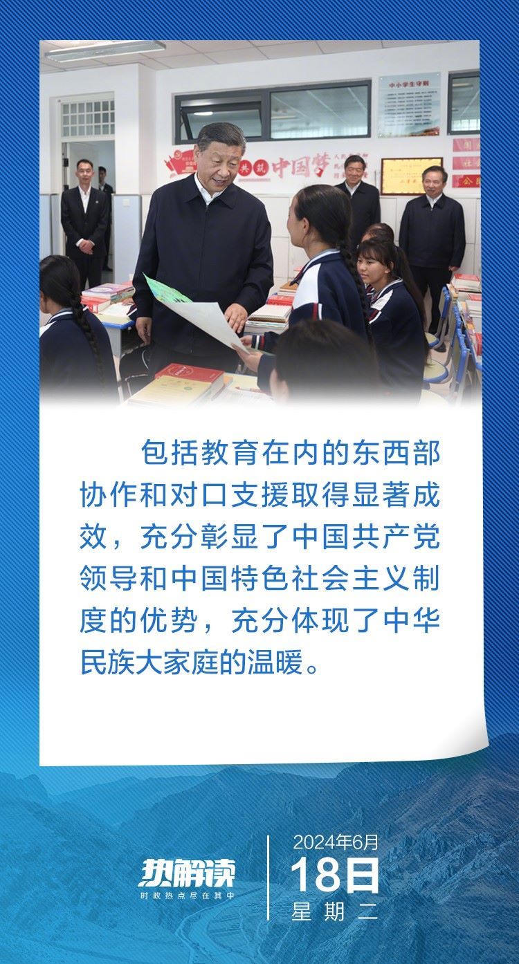 6月18日下午,在青海省考察的習(xí)近平總書記,首站來到這所中學(xué)看望老師和同學(xué)們。他先后走進(jìn)食堂、宿舍、教室,關(guān)心學(xué)生們的飲食、住宿、學(xué)習(xí)……了解當(dāng)?shù)厣钊胪七M(jìn)教育工作東西部協(xié)作和對(duì)口支援等情況。