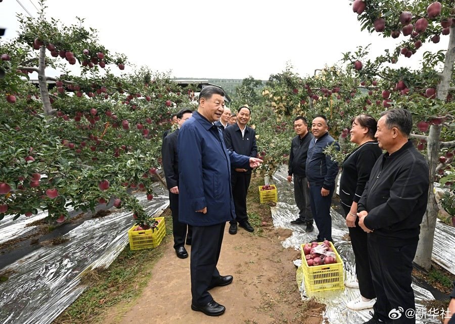 11日上午,習(xí)近平總書記來(lái)到甘肅天水市麥積區(qū)南山花牛蘋果基地考察,走進(jìn)果林向現(xiàn)場(chǎng)的果農(nóng)、農(nóng)技人員等詳細(xì)詢問(wèn)花牛蘋果品質(zhì)特色、種植技術(shù)、市場(chǎng)銷路等,并同鄉(xiāng)親們親切交流。習(xí)近平說(shuō),鄉(xiāng)村振興要靠產(chǎn)業(yè),各地要各展其長(zhǎng),走適合自己的振興道路。習(xí)近平勉勵(lì)鄉(xiāng)親們?cè)俳釉賲?,把蘋果產(chǎn)業(yè)做得更大更強(qiáng),過(guò)上更加幸福的生活。(文字記者:張曉松、朱基釵;攝影記者:鞠鵬、謝環(huán)馳)